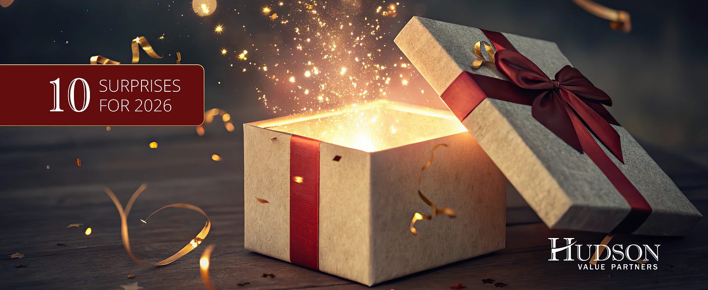 In the tradition of the storied strategist Byron Wien, Hudson Value Partners is delighted to share our second annual list of 10 Surprises for the coming year. For our fundamental research team, preparing this list is a chance to cast a wider gaze. We consider a “surprise” to be an event with a 50/50 chance, yet only 1 in 3 are even considering. Predictions about the future are notoriously difficult, but we hope our “10 Surprises” spur investors to think about the wide range of possibilities for 2026.