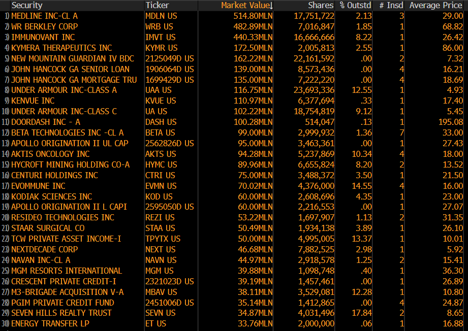 Top Sells in the Last 3 Months (as of 1/30/26 via Bloomberg)