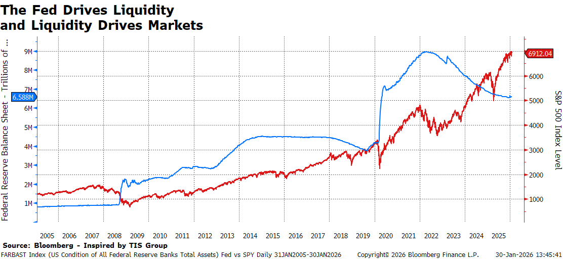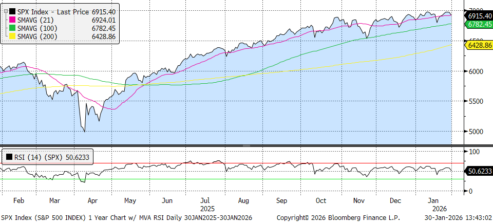 We started to put together this month’s markets commentary a few times, but each time we did, it seemed tomorrow’s headlines might just make this piece out of date in an instant. Sneaking in just under the wire as a January note allows us to have the benefits of seeing the early response to actions in Venezuela, the ferocious move in metals start to correct, responses to big tech earnings, and as of this morning, the of end the parlor game of who would be nominated to be the next chairman of the Federal Reserve.