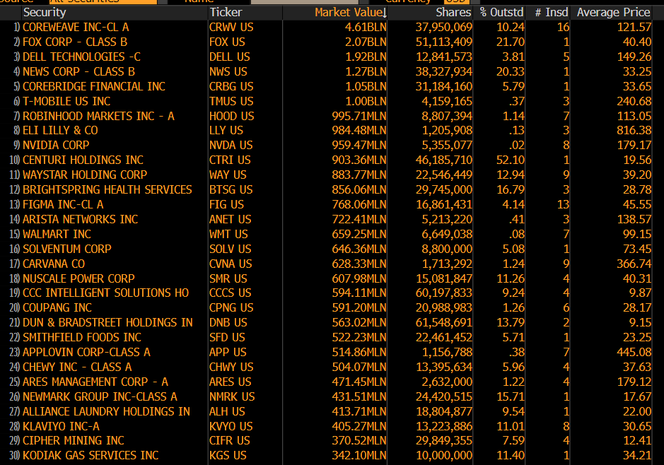 Top Buys in the Last 3 Months (as of 10/31/25 via Bloomberg)