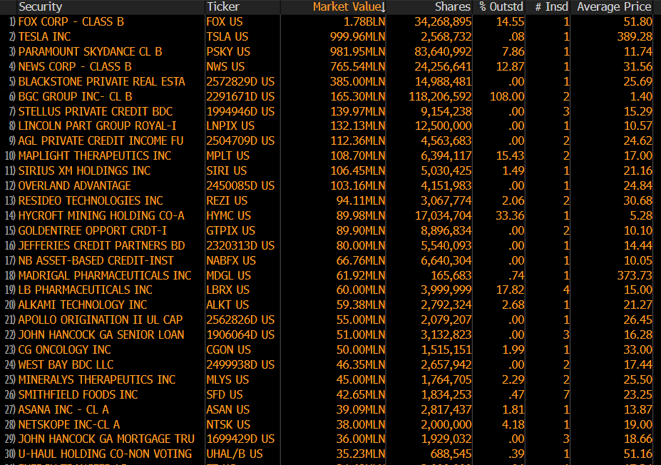 Top Sells in the Last 3 Months (as of 10/31/25 via Bloomberg)